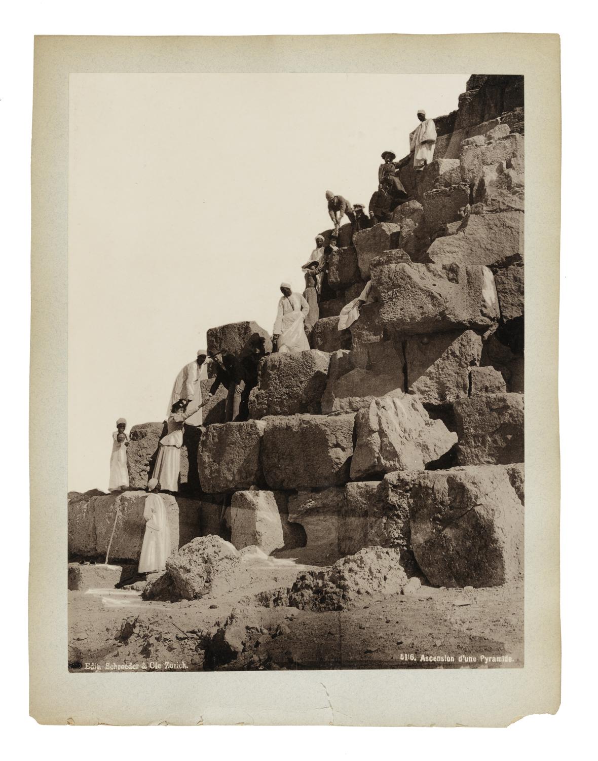 EDITION PHOTOGLOB. Zürich, [Climbing a Pyramid, Egypt], ca. 1890, collotype. The Image Centre. Gift of Marta Braun and Edward Epstein, 2023