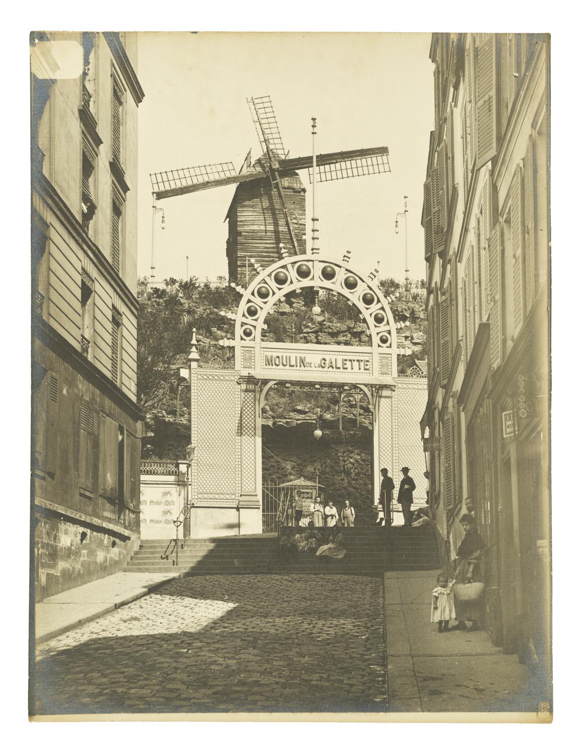Unidentified photographer, [View of the Moulin de la Galette façade, Paris, France], ca. 1900, collodion print. The Image Centre. Gift of Marta Braun and Edward Epstein, 2023