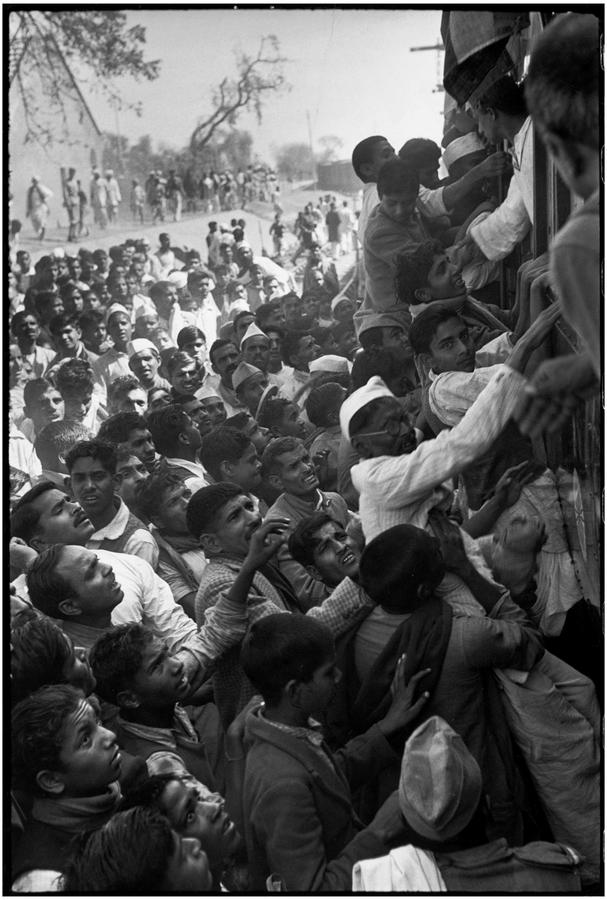 Henri Cartier-Bresson, [Crowds wait along the railway tracks for a chance to pay homage to Mahatma Gandhi's ashes, Delhi, India], 1948, gelatin silver print mounted on fiberboard © Fondation Henri Cartier-Bresson / Magnum Photos